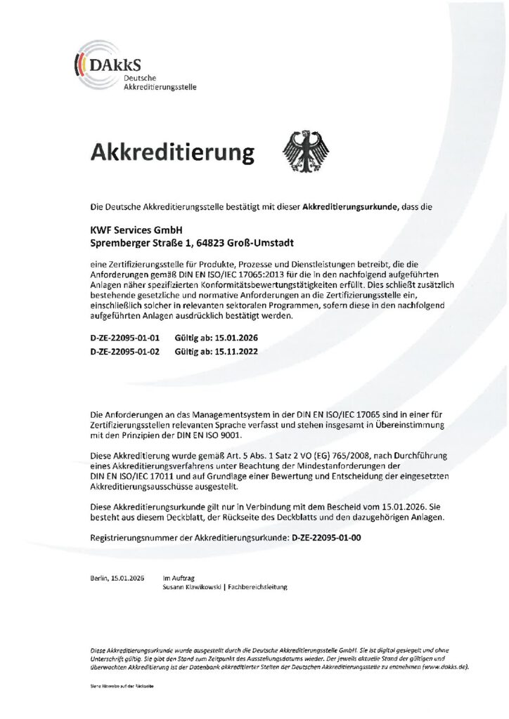 Unsere Akkreditierungen durch die „Deutsche Akkreditierungsstelle“ (DAkkS) und Befugniserteilungen durch die „Zentralstelle der Länder für Sicherheitstechnik“ (ZLS) bestätigen zusätzlich, dass Sie sich auf unsere Qualitätsstandards, Unparteilichkeit und exzellente Leistungen verlassen können.